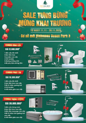 - Giảm giá cực sốc cho 3 combo thiết bị phòng tắm: Khai Lộc – Phát Tài – Thịnh Vượng